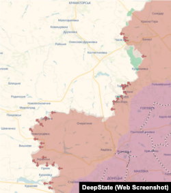 Украинский проект DeepState, отслеживающий ситуацию на фронте, также сообщает о продвижении российских войск в Торецке.