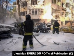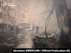 Государственная служба Украины по чрезвычайным ситуациям публикует снимки с места падения сбитой российской ракеты "Искандер" в Одессе. В результате ракетного удара, по последним данным, погибли 10 и ранены не менее 55 человек, в том числе дети.