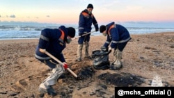 Зона загрязнения мазутом побережья Чёрного моря в Краснодарском крае увеличилась с 35 до 49 километров. Мониторинг в районе разлива нефтепродуктов после крушения танкеров в Керченском проливе расширен до 70 километров, сообщили в МЧС России.