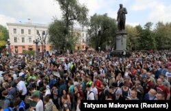 В Петербурге на акции солидарности с Москвой задержали троих человек.
