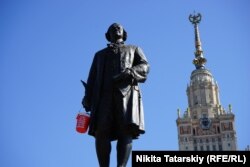 • И о “мусорной реформе”: памятнику Ломоносову у главного здания МГУ дали в руки мусорное ведро с надписью "Если где-то убыло, значит, где-то прибыло". Примерно так уроженец нынешней Архангельской области сформулировал закон сохранения материи в письме Леонарду Эйлеру.