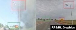 Радио Свобода геолоцировало видео этого удара: оно действительно снято в Масловой Пристани, а автомобили, попавшие под обстрел, двигались в направлении Белгорода (точные координаты).
