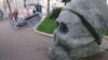 Москвичи недоумевают по поводу огромного черепа в центре столицы